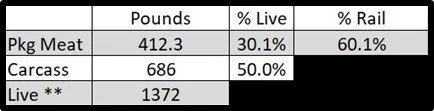 As an aside, our carcass weight reduced by 273.7 pounds from the 686-pound rail weight to produce 412.3 pounds of packaged meat.
